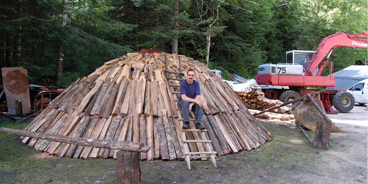 Construction de la charbonnière Vers 8h00 , début de la construction de la meule. E...